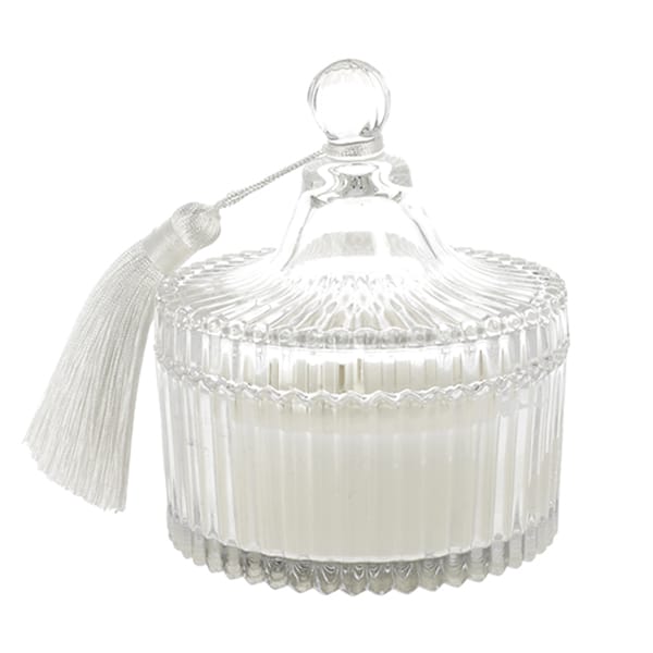 Bomboniera Scatola in Vetro Rigato Grande con Coperchio e Nappa – Disponibile in Vari Colori