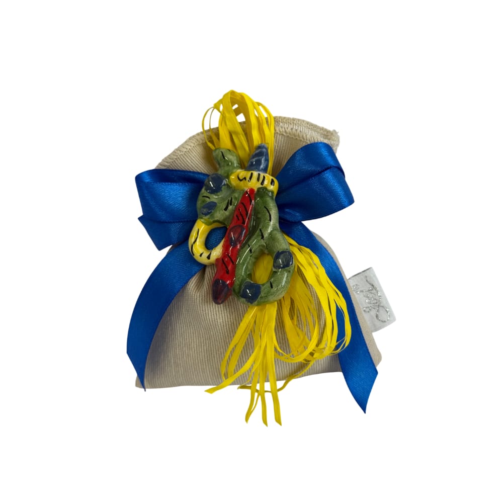 Rendi speciale ogni festa con il sacchetto porta confetti in cotone naturale impreziosito da un elegante asso napoletano in porcellana di Capodimonte, simbolo di fortuna e tradizione. Questa bomboniera Made in Italy è pensata per chi desidera un prodotto autentico, raffinato e ricco di significato, perfetto per celebrare compleanni, lauree ed eventi speciali.