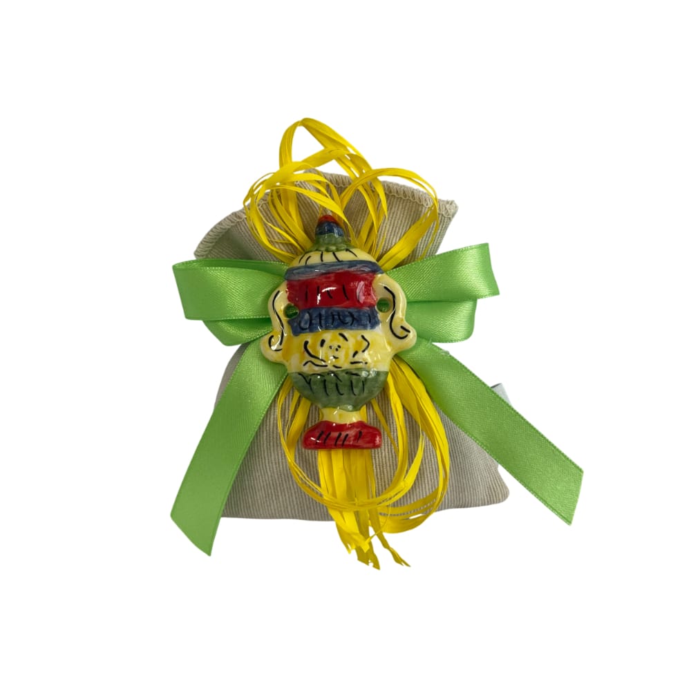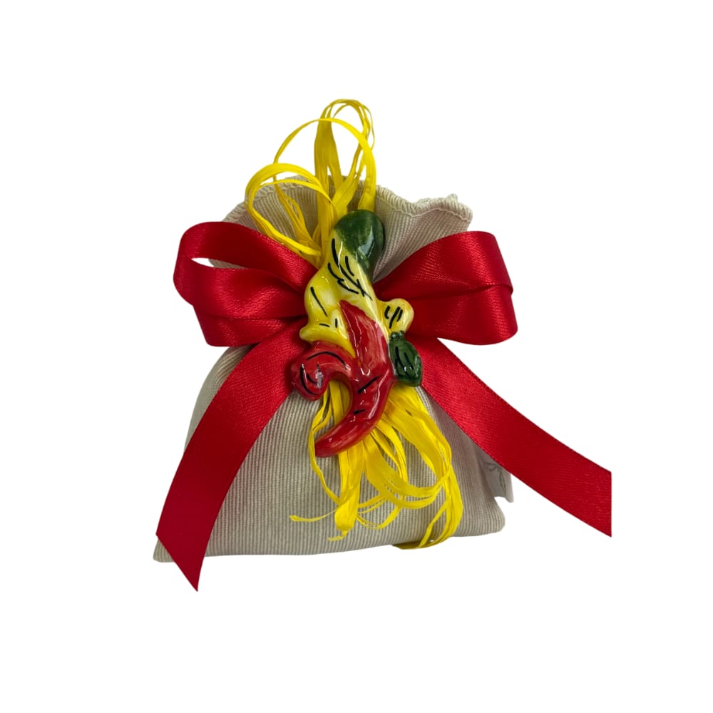 Sacchetto in Cotone con Asso Napoletano in Porcellana di Capodimonte
